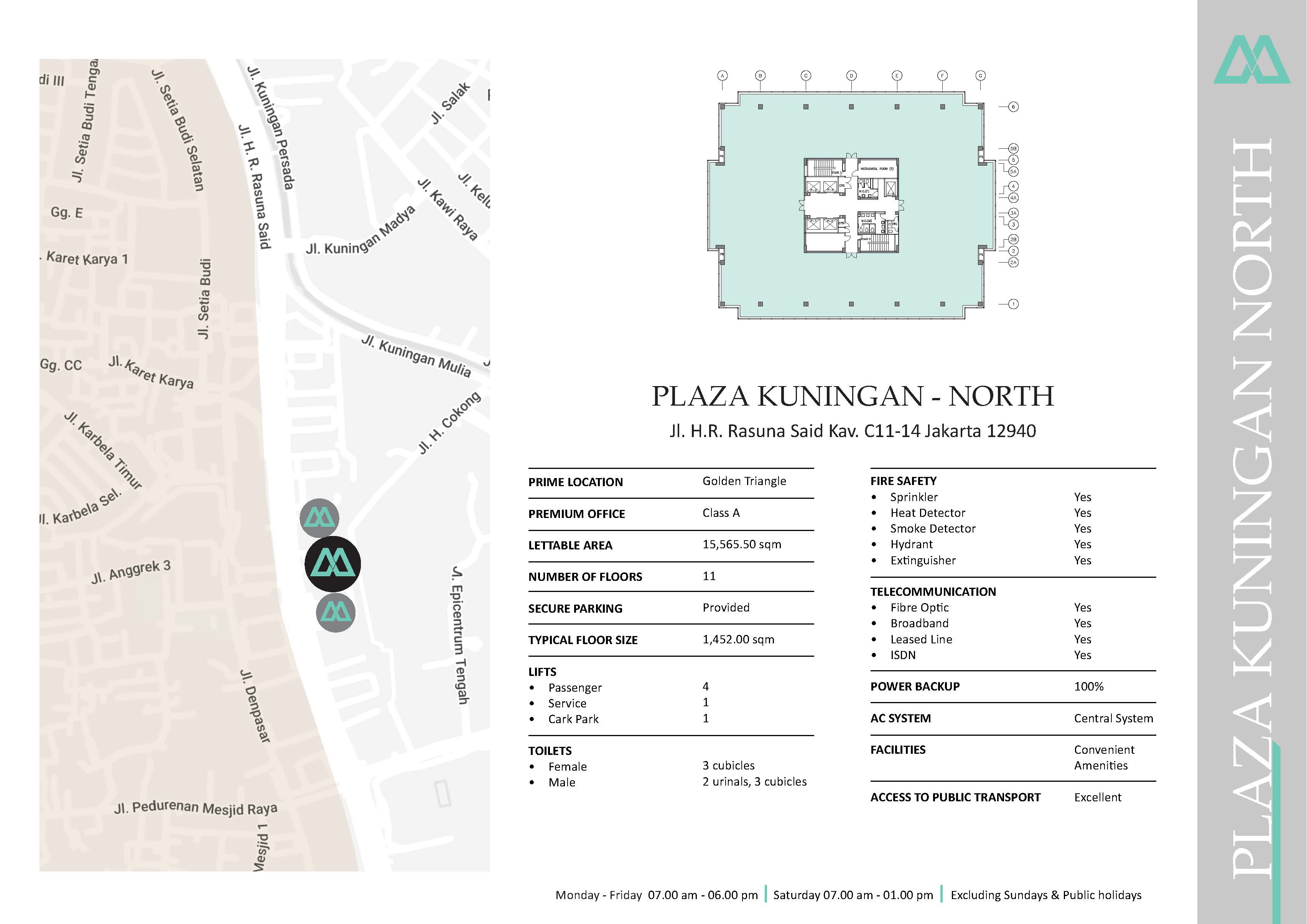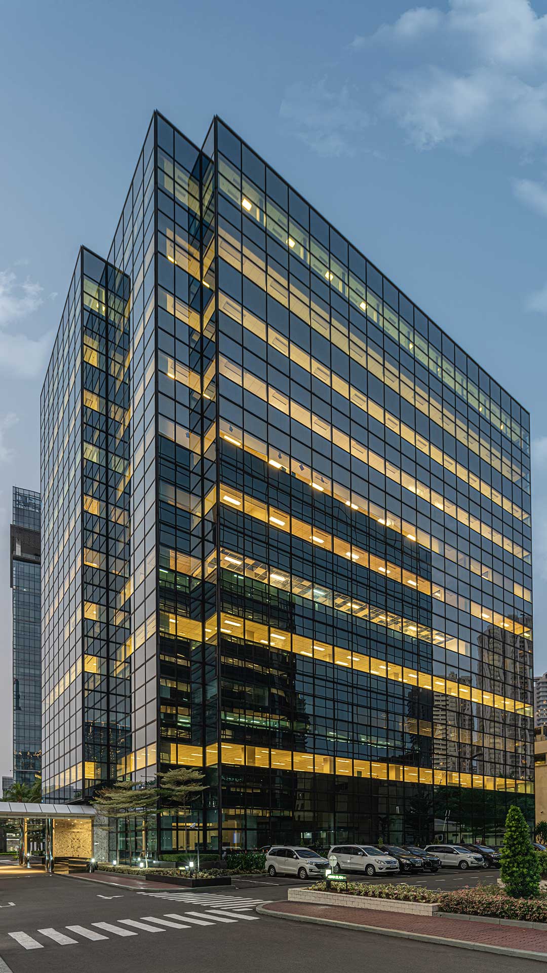 Each tower of the twin-tower office complex includes glass curtain walls with energy efficient panels and a central core. Plaza Kuningan, designed by Nihon Architects, has accommodated the corporate headquarters for many Mulia Group companies since 1985.